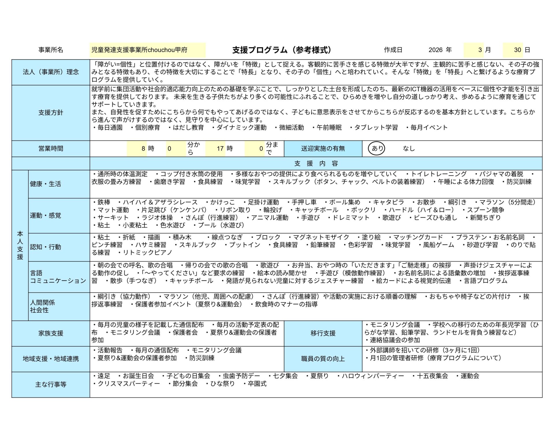 児童発達支援事業所chouchou甲府 支援プログラム