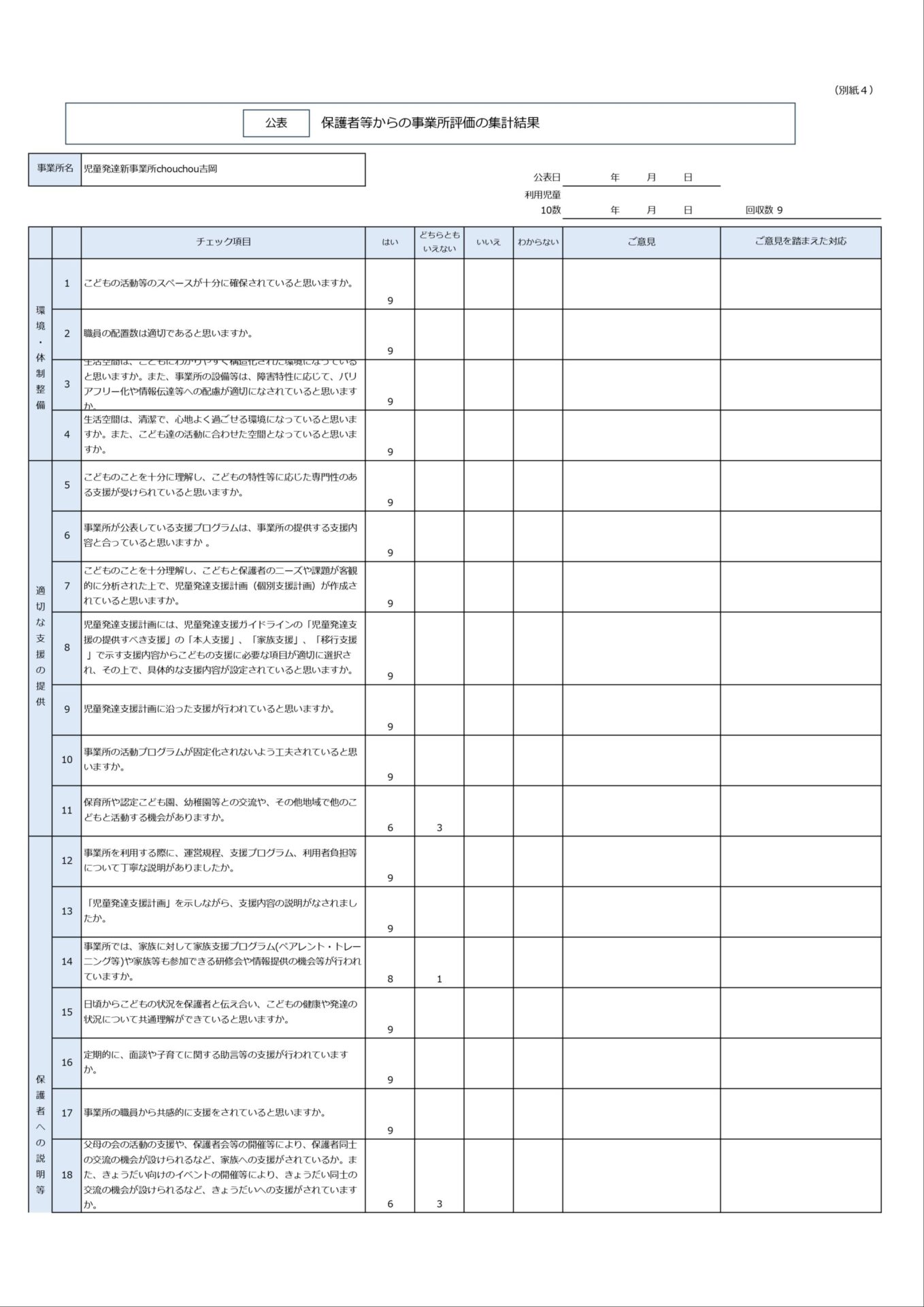 児童発達支援事業所chouchou吉岡 令和7年度事業所における自己評価表結果